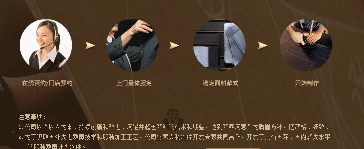 5、采用高质量的产品标准GB/T2664-2001《男西服、大衣》、GB/T2665-2001《女西服、大衣》和GB/T2666-2001《男、女西裤》(均参照采用JISL4208-1992成品男西服)进行质量控制。