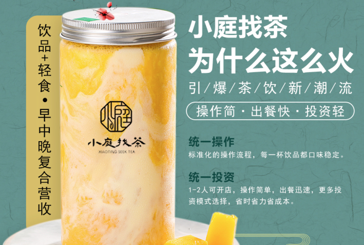 小庭找茶的豆腐鲜奶茶非常有特色,迅速圈粉,茶饮+轻食,创意产品市场大,主题风格引食客纷纷点赞,开店经营经营翻番。