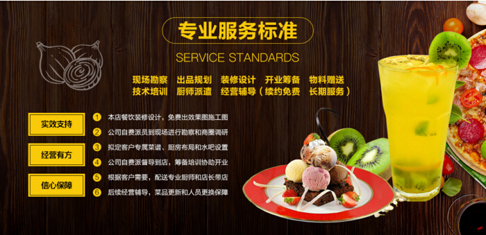 在加盟合作期内授权您使用我们的品牌,使用范围包含并不限于门店全套VIS形象、餐牌、POP广告、工衣工牌、餐具器皿、外宣等。